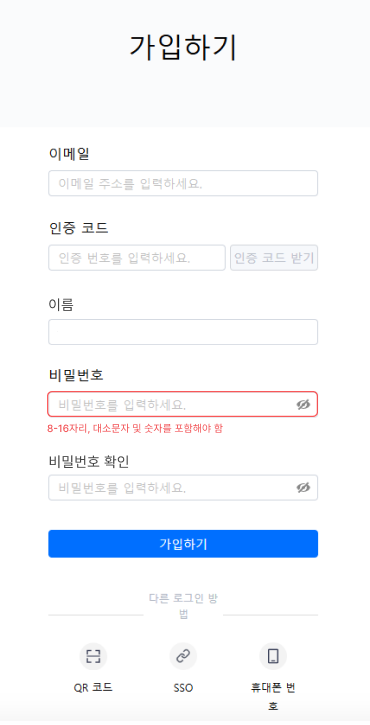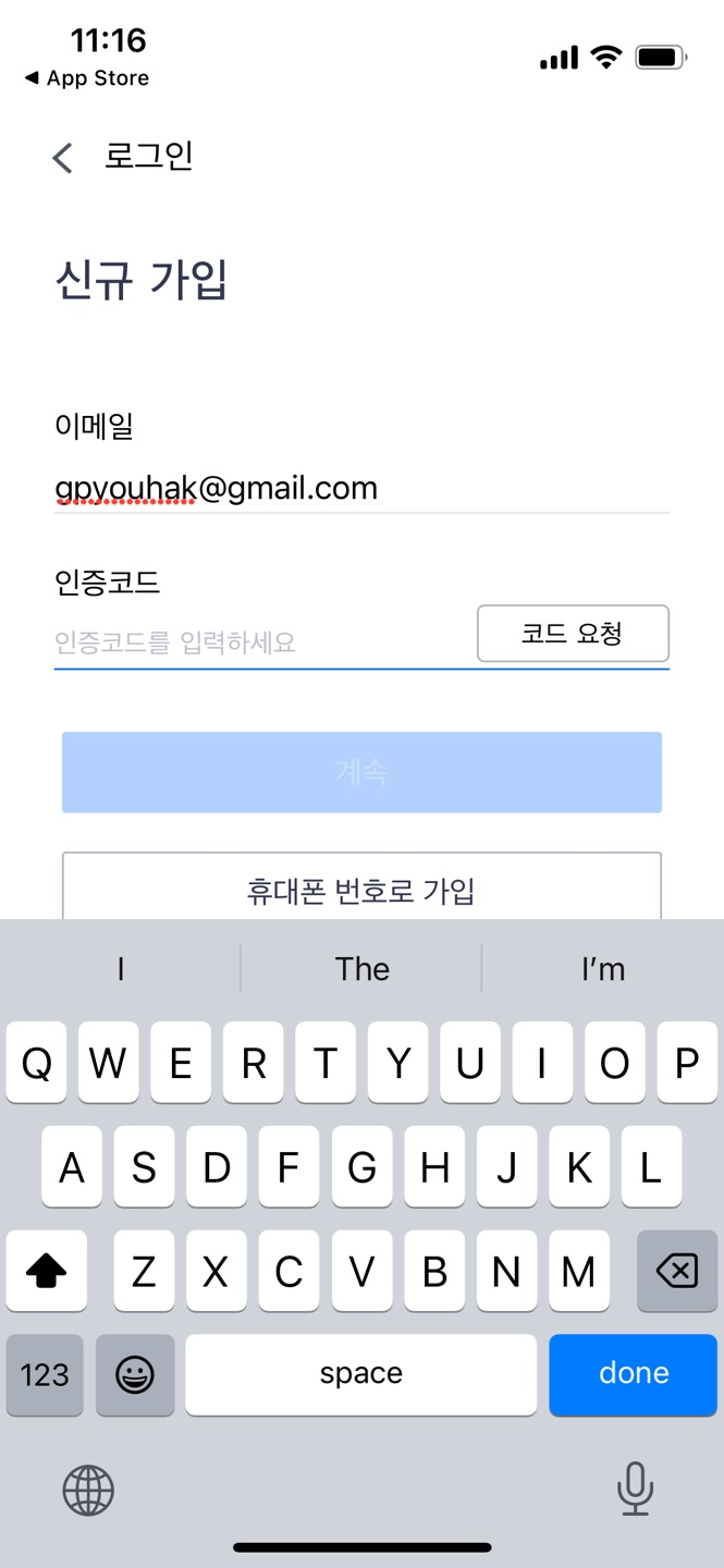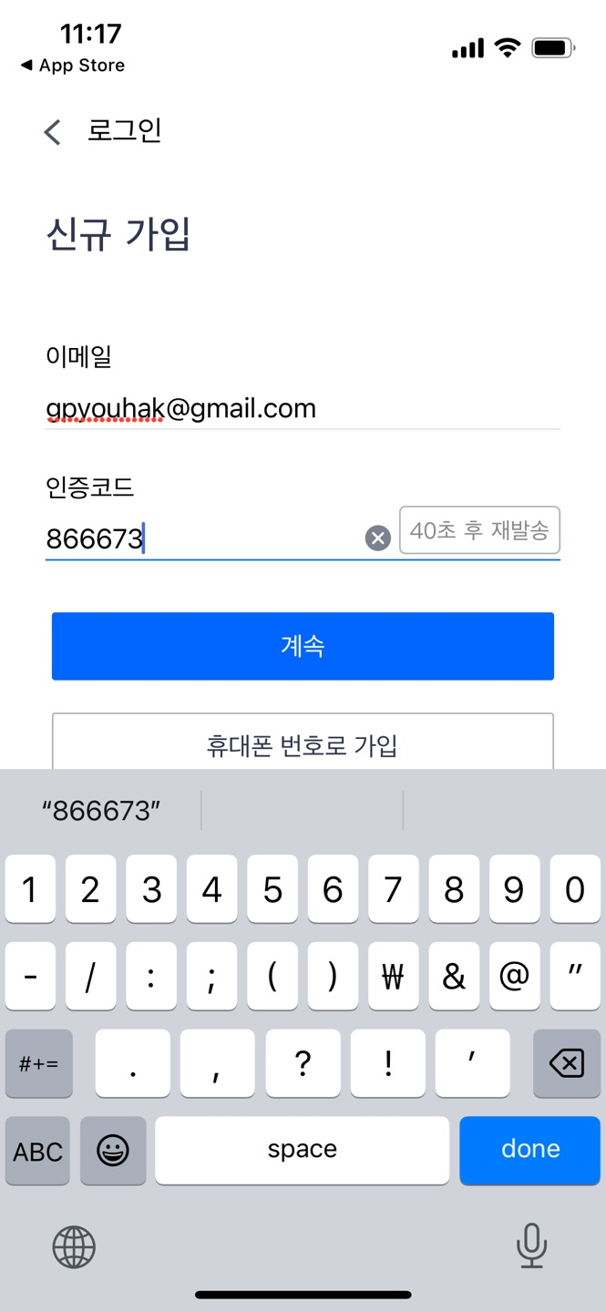 4. 사용자 인증(스마일 순서대로 터치) > 이메일로 전송 받은 코드 입력