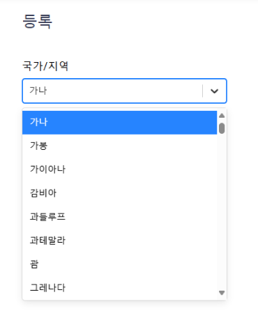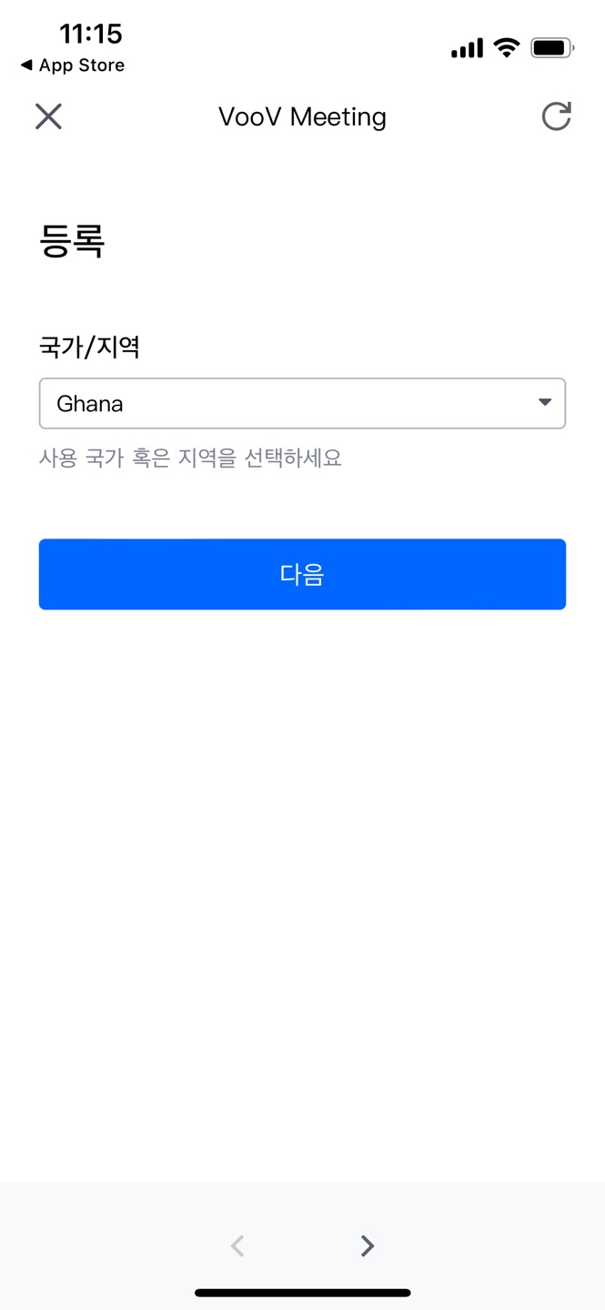 3. 국가/지역 가나(Ghana) 선택 > 프로토콜 약관동의 > 이메일 코드요청
